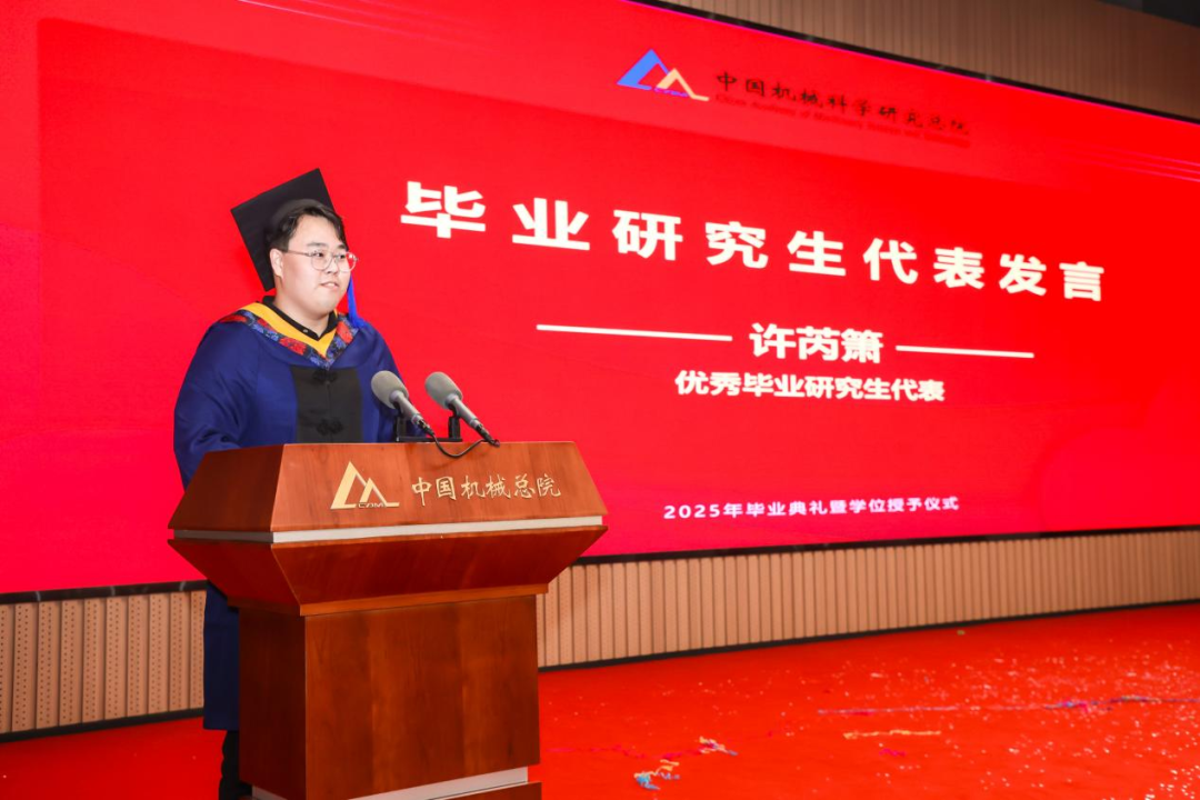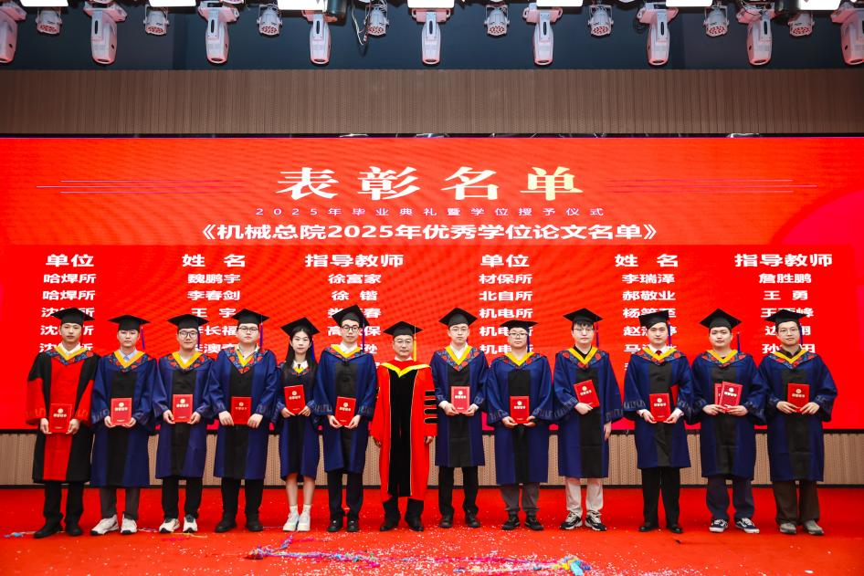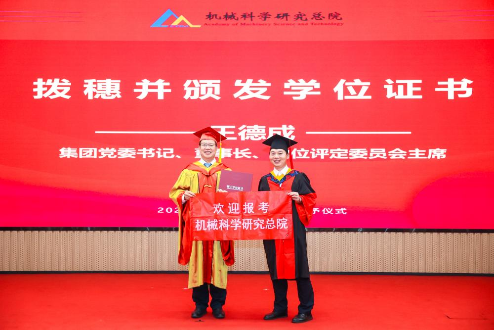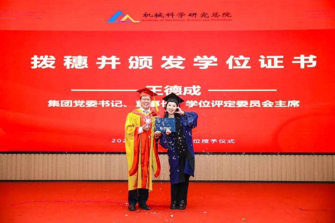 李愛(ài)國(guó)宣讀了《機(jī)械科學(xué)研究總院2025屆畢業(yè)生學(xué)位授予決定》,王德成為每位畢業(yè)生撥穗正冠并頒發(fā)學(xué)位證書(shū)。